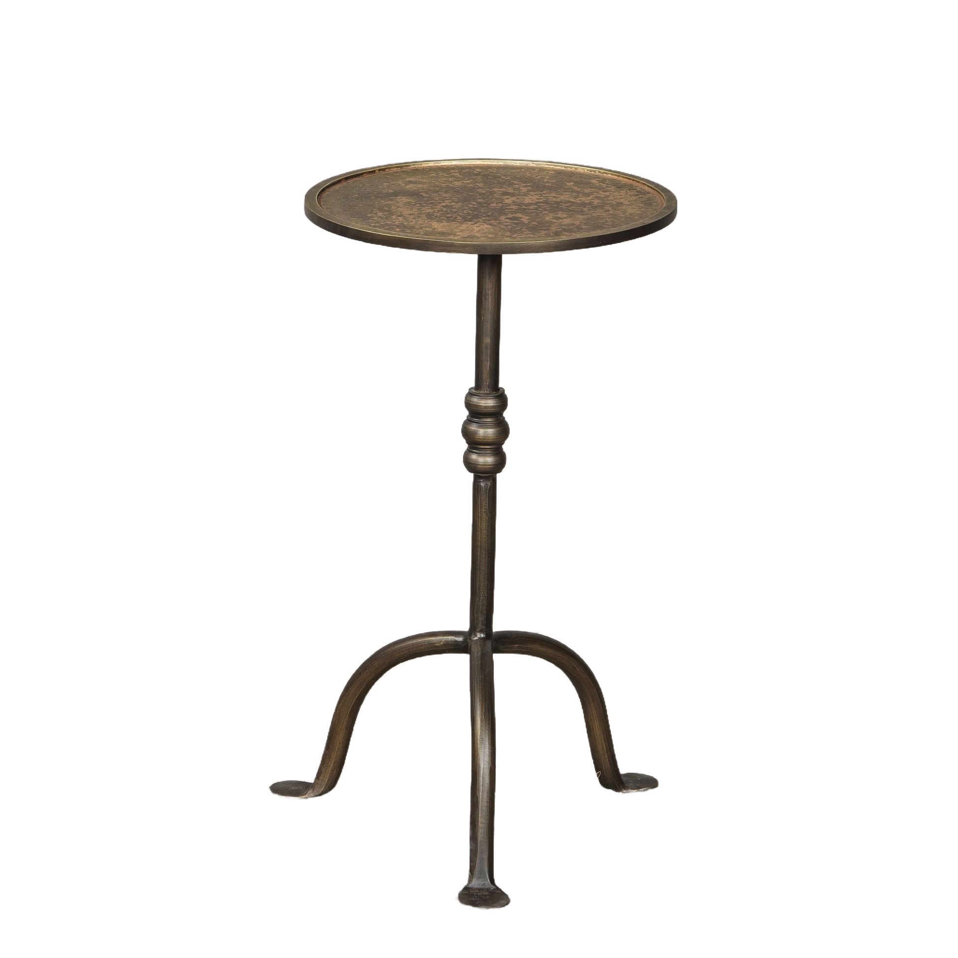The Delores Drink Table features a beautiful Hand Rubbed Brass finish with elegant Ball Detail for a sophisticated touch.