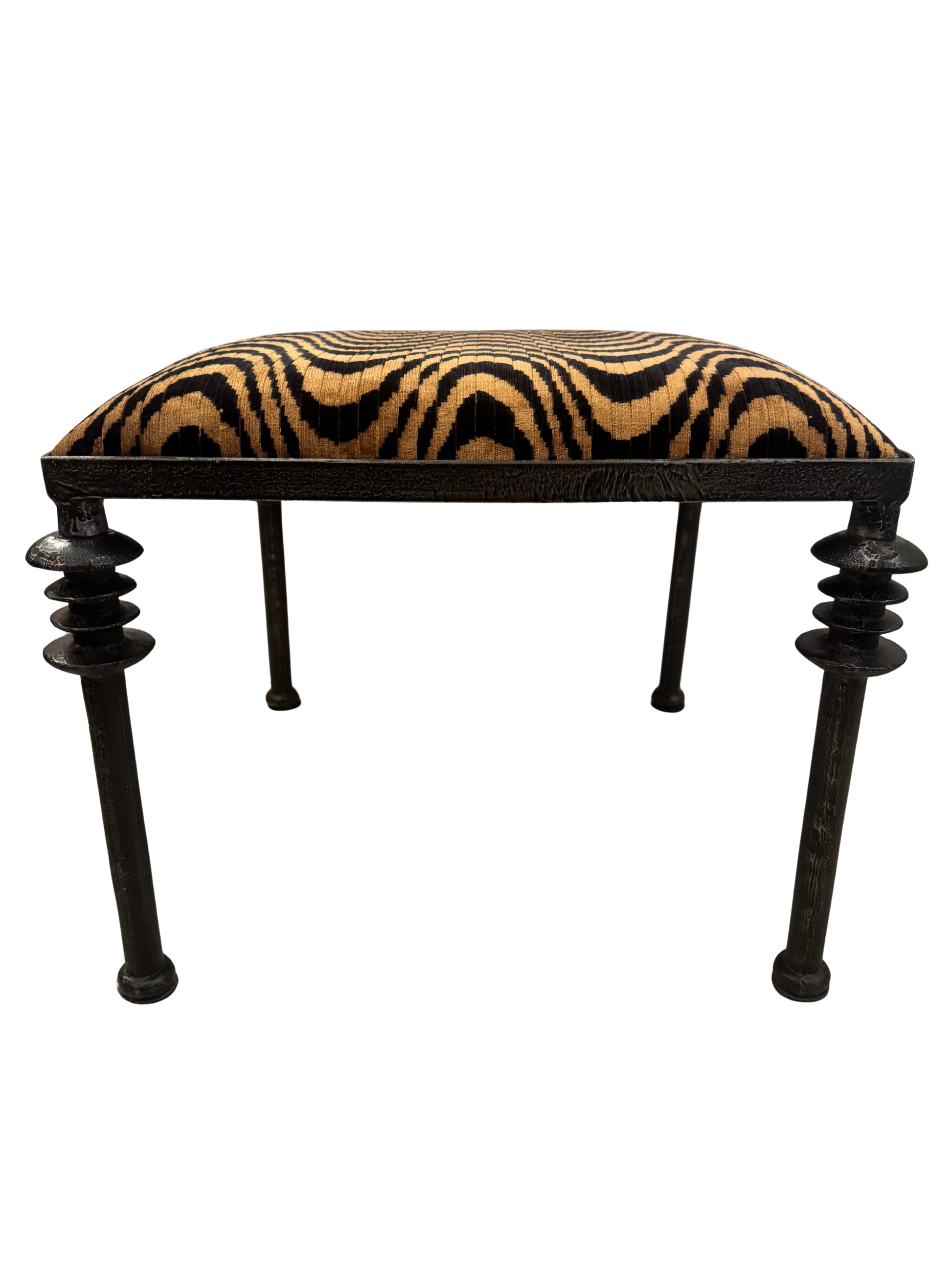The Lorenzo Bench. Crafted with stacked iron details and Upholstered In A Custom Velvet Fabric