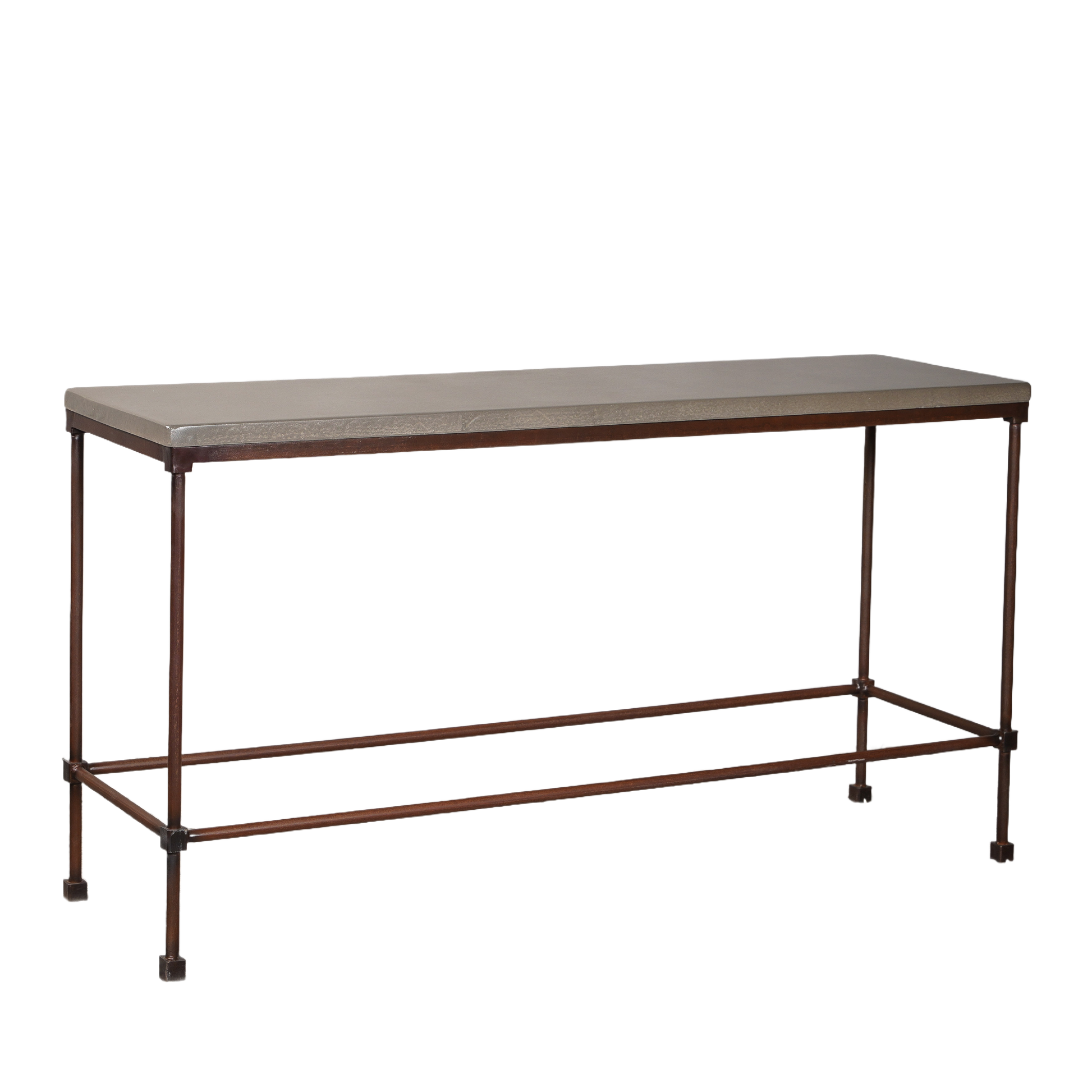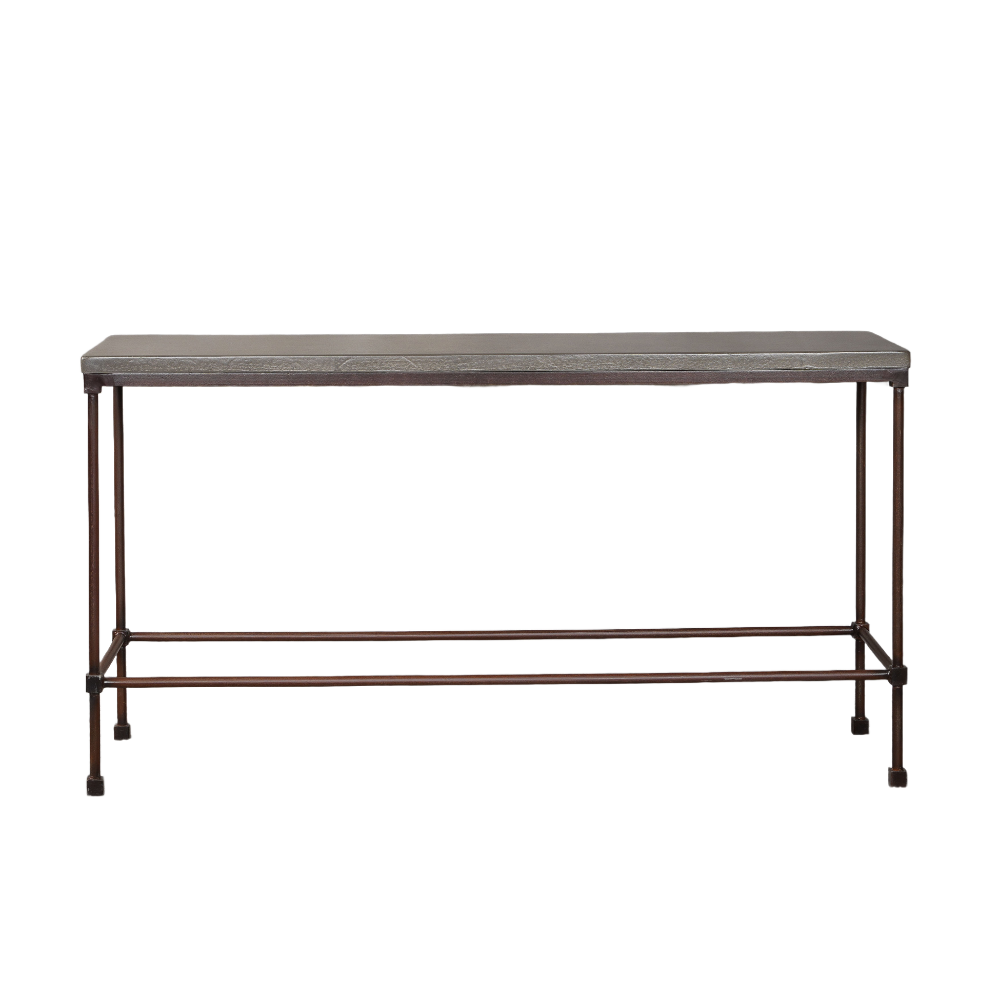 The Santiago console features iron legs and a concrete top, adding a touch of industrial style to any space.